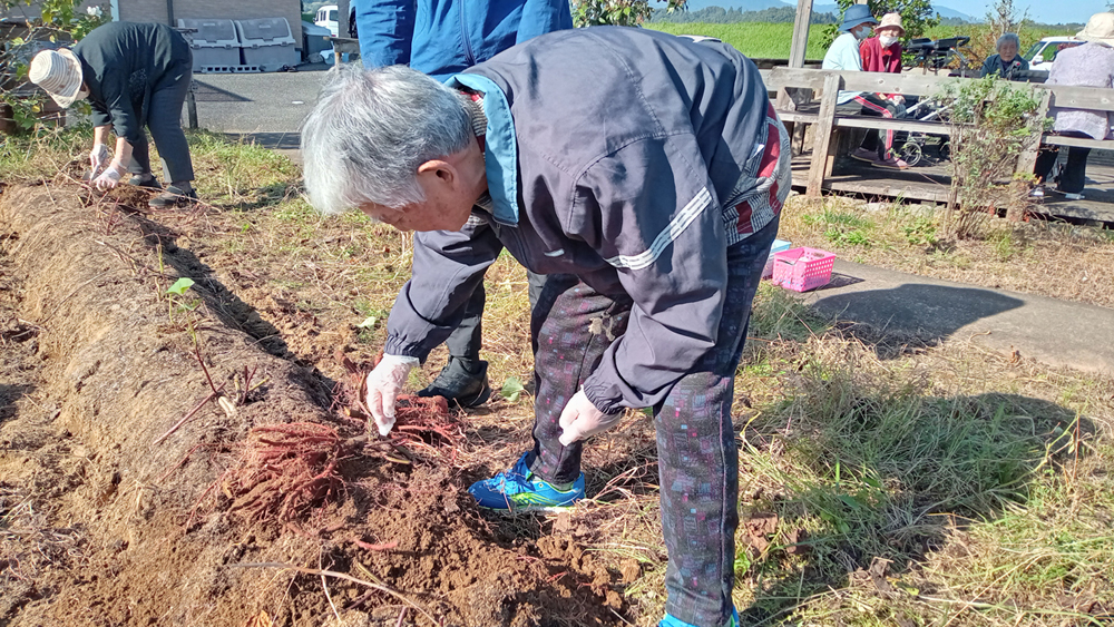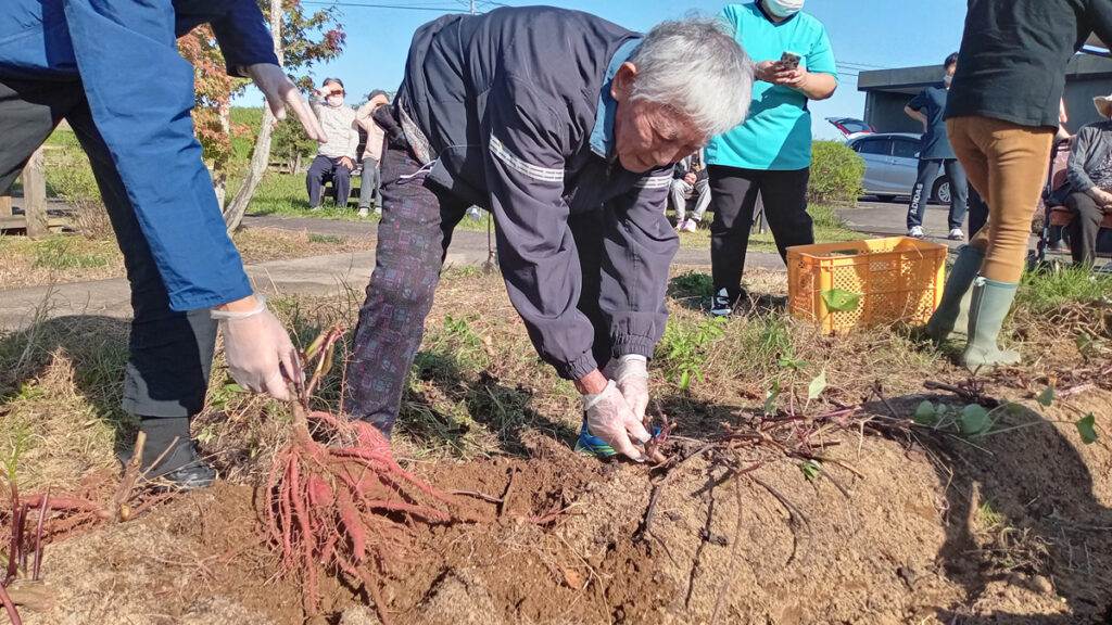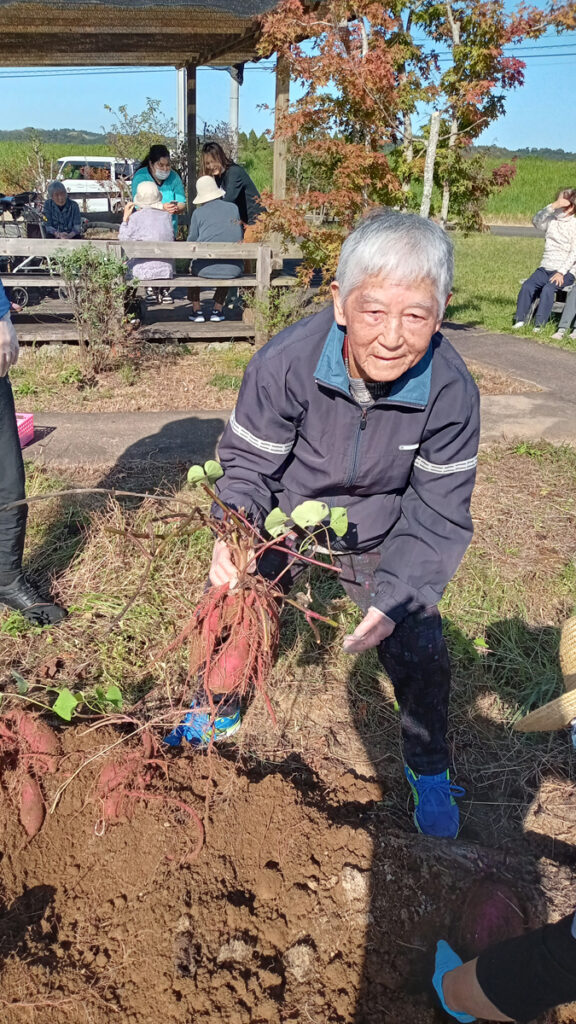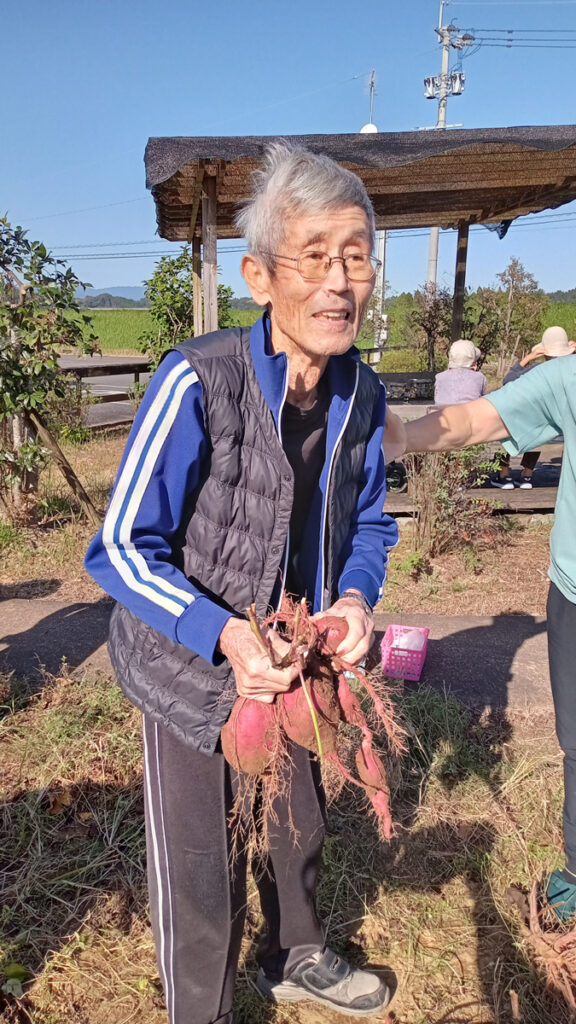足取りも軽く、一目散に畑へ向かい、次々とサツマイモを力強く引き抜いていらっしゃいました!