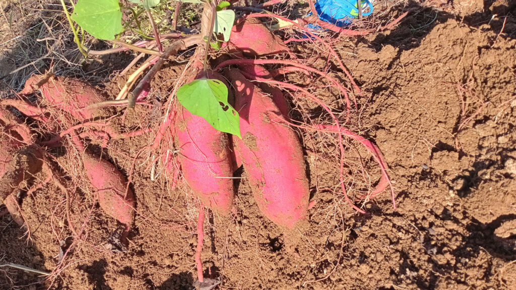 今年の4月に植えたサツマイモの苗が、ようやく11月に収穫の時期を迎えました!